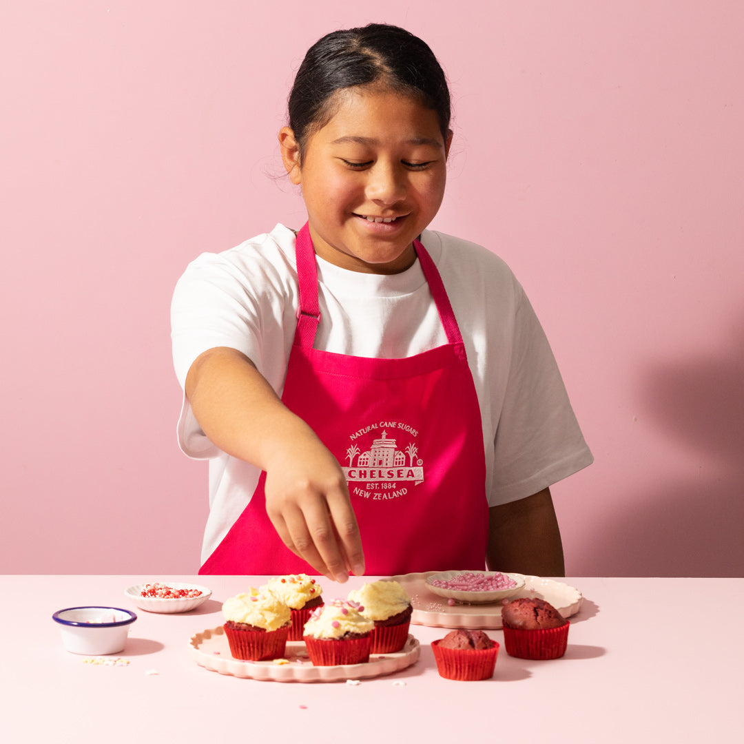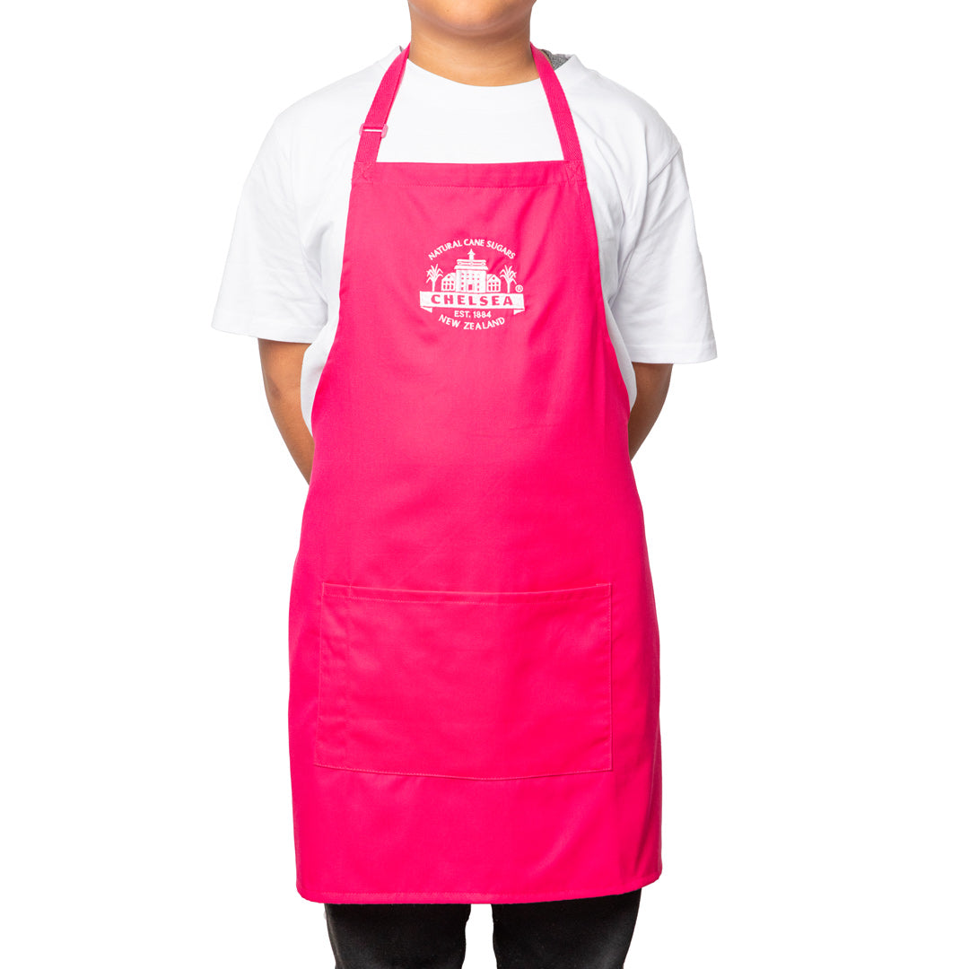 Get your little ones involved in the kitchen with the Chelsea Apron for kids, featuring a playful pink design and branded with the iconic Chelsea Sugar logo. Let them show off their cooking skills in style!