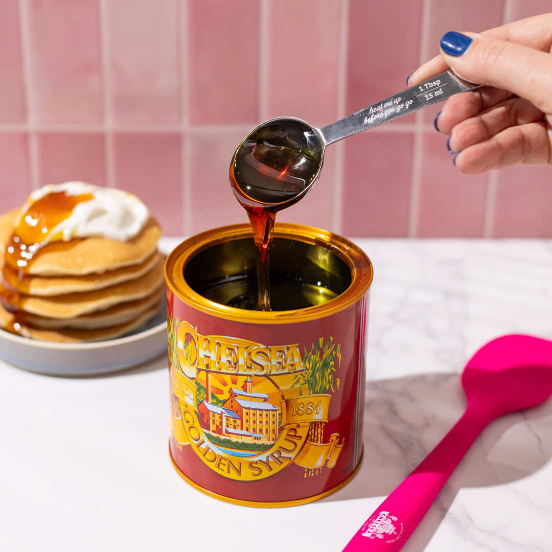 Introducing the Chelsea Golden Syrup Spoon! This spoon is branded with the Chelsea logo and makes measuring golden syrup a breeze - just warm it up in hot water first. Say goodbye to sticky messes and hello to perfect measurements every time.