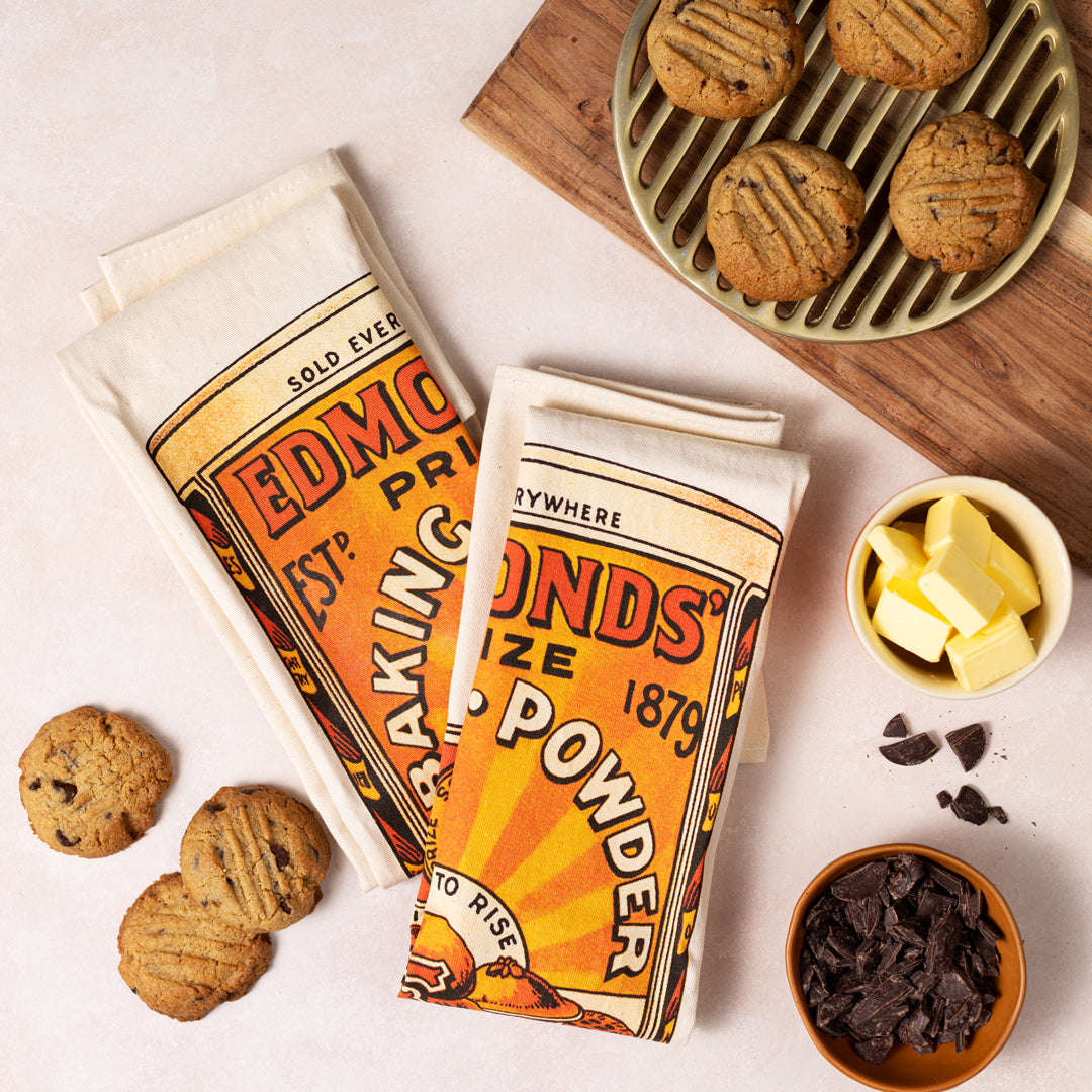 Add a dash of charm to your kitchen with the Edmonds Tea Towel. Featuring a vintage graphic of the iconic Edmonds baking powder tin. Perfect for any baking enthusiast. Get yours today!